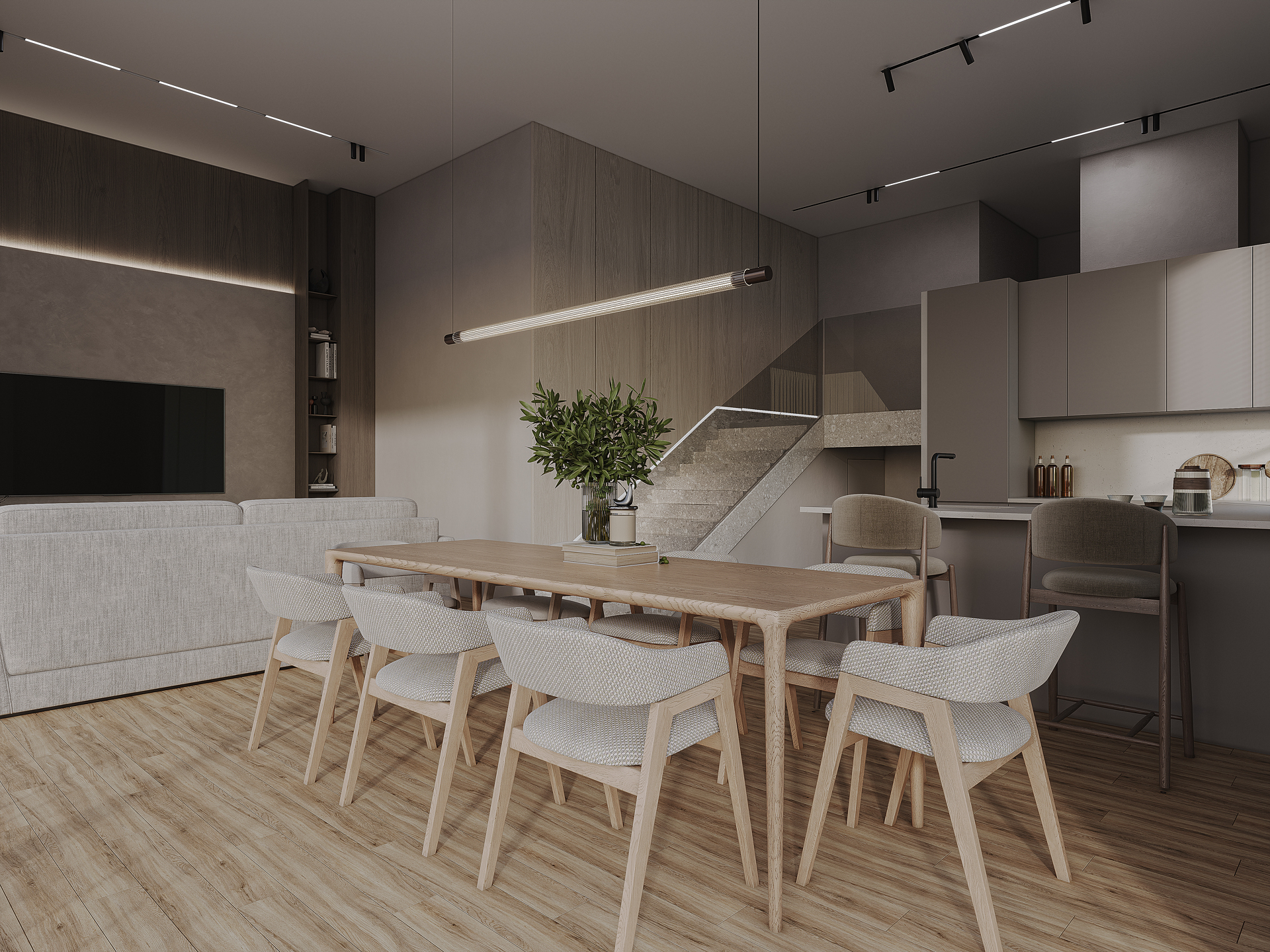 - Cuisine/ salle à manger de 26,07 m2 avec accès à une première grande terrasse de 23,35 m2