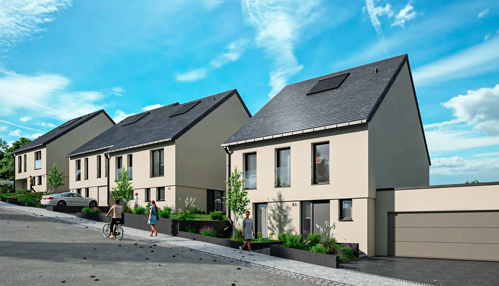 Maisons jumelées libres de trois côtés sur des terrains d'environ 3,5 ares.