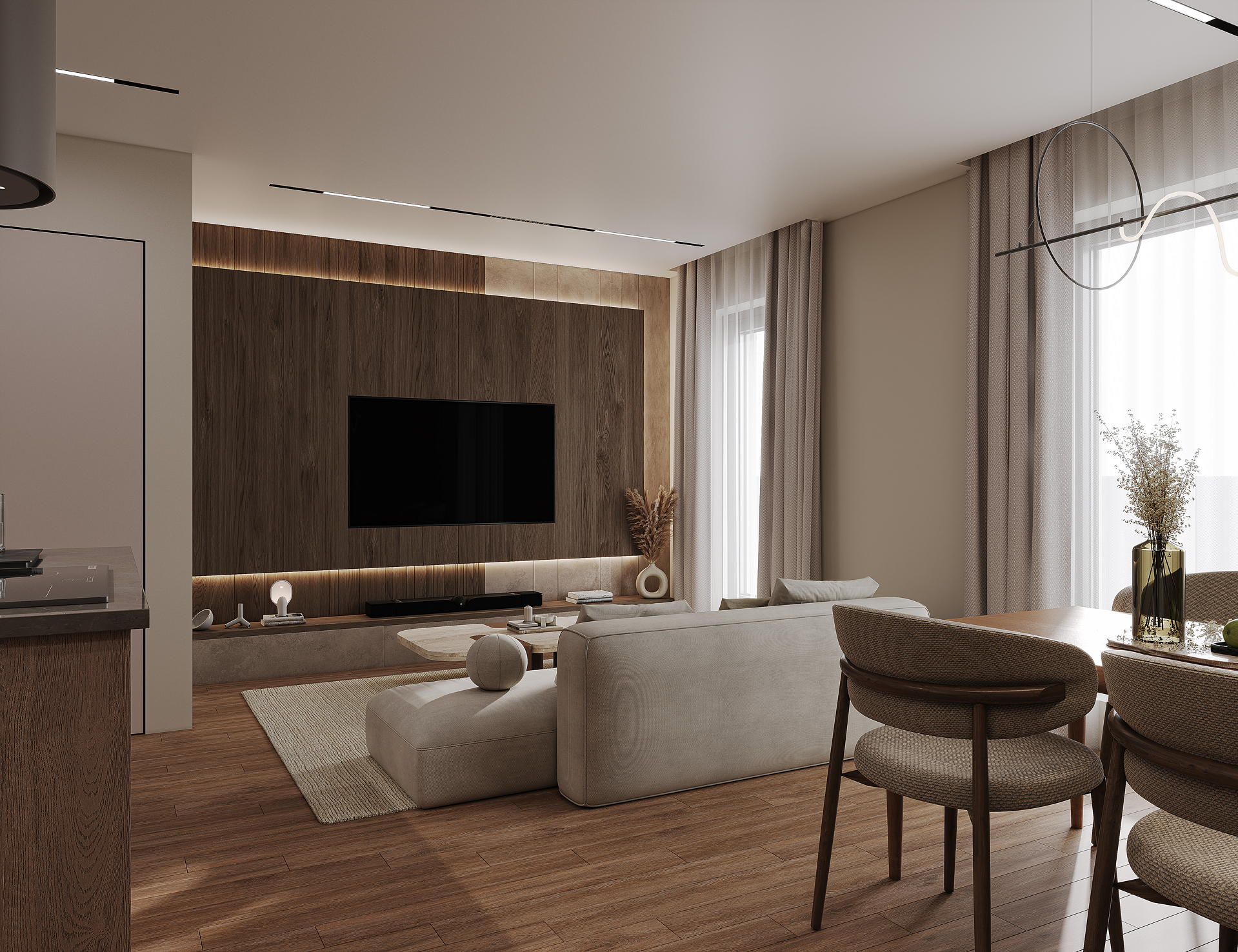- Living/cuisine de 32,70 m2 avec un espace chambre et accès terrasse de 5,82 m2
